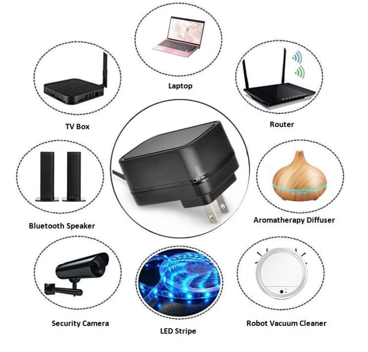 -Our power adapters are widely used by laptop,TV box, router, bluetooth speaker,security camera,LED stripe,robot vacuum cleaner,aromatherapy diffuser etc.